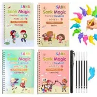 Sank Magic Practice Copybook (4 Books + Magic Pen & 10 Ink Refills) Sank Magic Book for Montessori Children Tracing Handwriting First Preschool Baby Learning Books for Kids