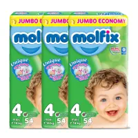 Pack of 3,Molfix Diaper,Size 4, Maxi, 7-14Kg, 54Pcs, Jumbo Packs