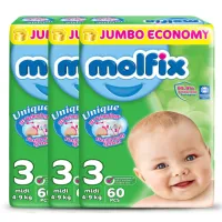 Pack Of 3 , Molfix Diaper,Size 3, Midi 4-9Kg, 60Pcs,Jumbo Packs