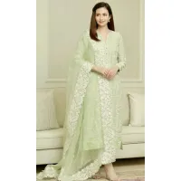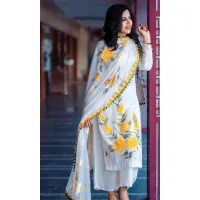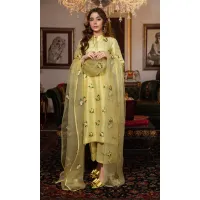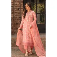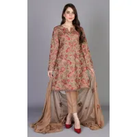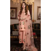 3PC Organza Embroidered Shirt With Linen Inner And (D)