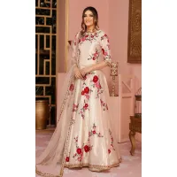 Akbar Aslam-3PC Velvet Embroidered Shirt With Organza(D)