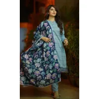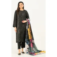 Limelight- 3PC Embroidered Dhanak Shirt with Printed (D)