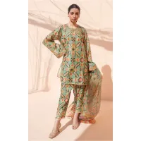Sabor Ali – 3PC Organza Embroidered Shirt with Organza Embroidered Dupatta