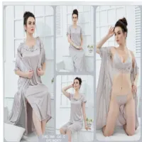 Tee Dot 6-pieces Bridal Nightwear With Bra & Panty For Girls & Women – Grey