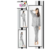 Tee Dot 2-Pieces Silk Printed Pajama & Shirt For Girls & Women – Black & White