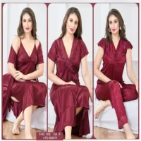 Tee Dot 4-pieces Bridal Nightwear For Girls & Women – Maroon