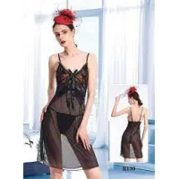Net nighty gown (2 piece set) black Transparent Gown Bridal beautiful night dress nightwear sleepwear Lingerie for girls