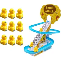 Duck Climbing Stairs Toy Children Roller Coaster Toy Set Duck Race Track Set With LED Flashing Lights, Music
