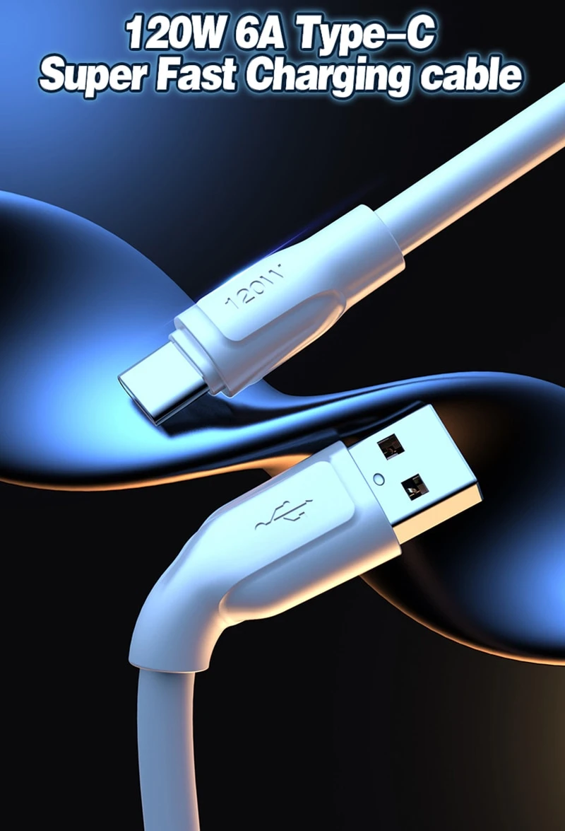 120W 6A USB Type C Cable Fast Charging Cable For Xiaomi OPPO POCO Samsung Mobile Phone Power Bank Usb C Cable Charger USB Cable