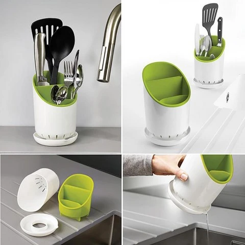 Product details of 1Pcs Plastic Multifunction Cutlery Storage Rack Kitchen Knife Block Holder Turret Shelf Drainer Box Knives Fork Organizer Stand