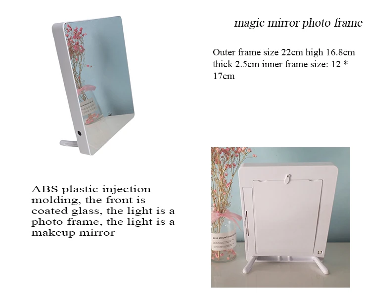 Features: picture frame(turn on the light), mirror(turn off the light)