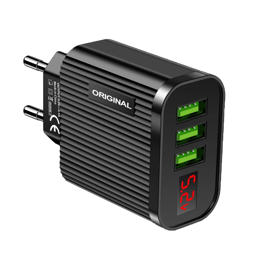 Product details of 3 Port USB Phone Charger 5V 3.1A Digital LED Display Travel Wall Charger Adapter for iPhone Samsung Xiaomi EU Plug