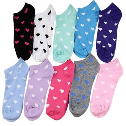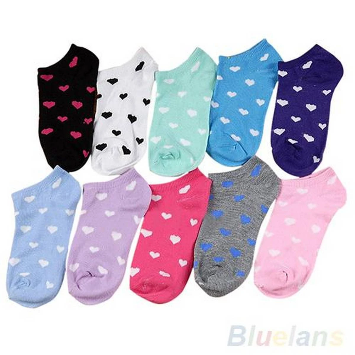 Product details of 5 Pairs Women Girls Cute Heart Ankle High Low Cut Casual Sport Cotton Socks