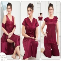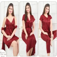 6 Pieces Bridal Silk Nighty Set For Honeymoon – 2064