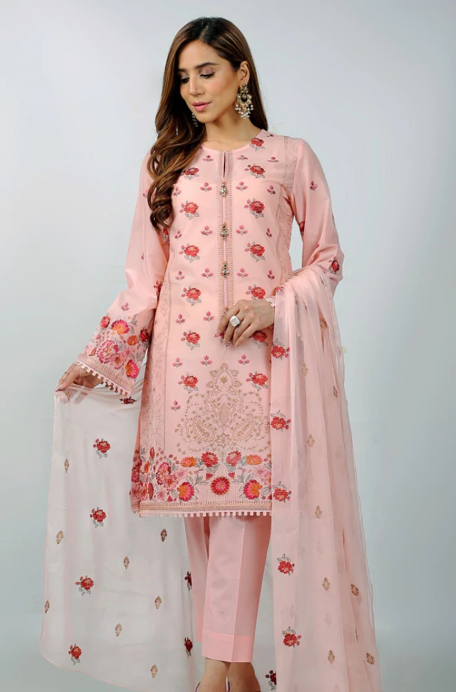 BAREEZE – 3PC Lawn Embroidered Shirt With Embroidered Bamber Chiffon Dupatta -BFLE767 (B)
