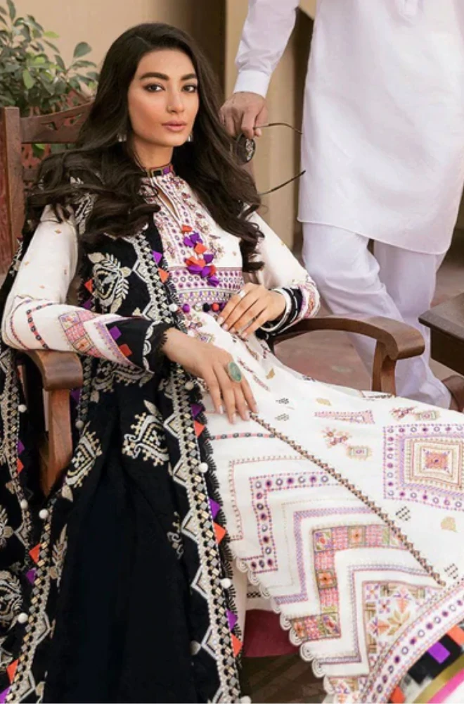 3PC Lawn Embroidered Shirt With Bamber Chiffon Embroidered Dupatta -BFHA804 (B)