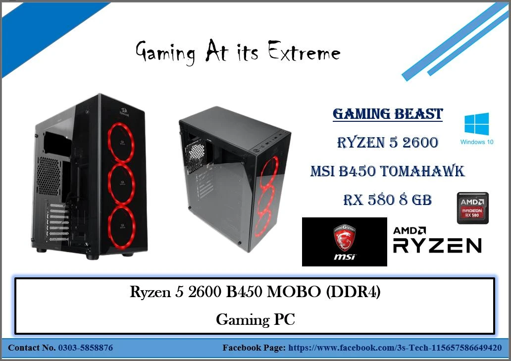 ASUS B450 M PRO MOBO (can be changeable)RYZEN 5 36006 CORES 12 THREADSUPTO 4.2 GHz baseclock16 GB CORSAIR VENGEANCE LPX RGB RAM600 WATT PSU HYPERK 80 PLUSReddragon Case 4 RGB FANS256 GB SSD (Nvme)1 TB HDDRTX 3060 12 GB GDDR6 AMP EditionGAMING PC COMBO