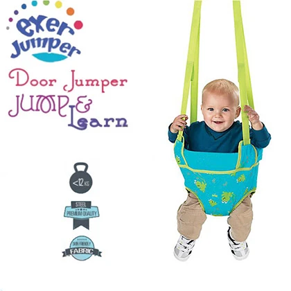 Exer Jumper provides an amazing way of keeping your baby active.The quick set up makes this itemterrific for long trips. It attaches to most interior door ways with molding.The adjustable straps allow you to customize the height of the jumper for your child. Door jumper helps develop core muscles and provides entertainment for your baby.