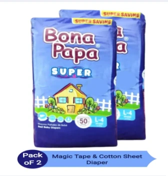 Product details of Bona Papa SUPER Baby Diaper Large Size – Pack of 2 – 50pcs Each (Magic Tape)