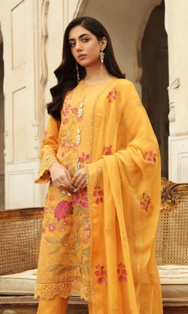 Bareeze Rhythm- 3PC Linen Embroidered Shirt With Bamber Chiffon Embroidered Dupatta