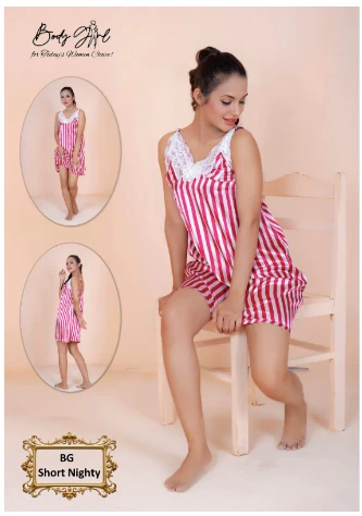 Body Girl 1-Pieces Silk Printed short Nighty For Girls & Women – Pink