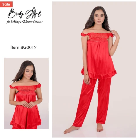 Body Girl 2 Pieces Bridal Silk Nightwear For Girls & Women – Red