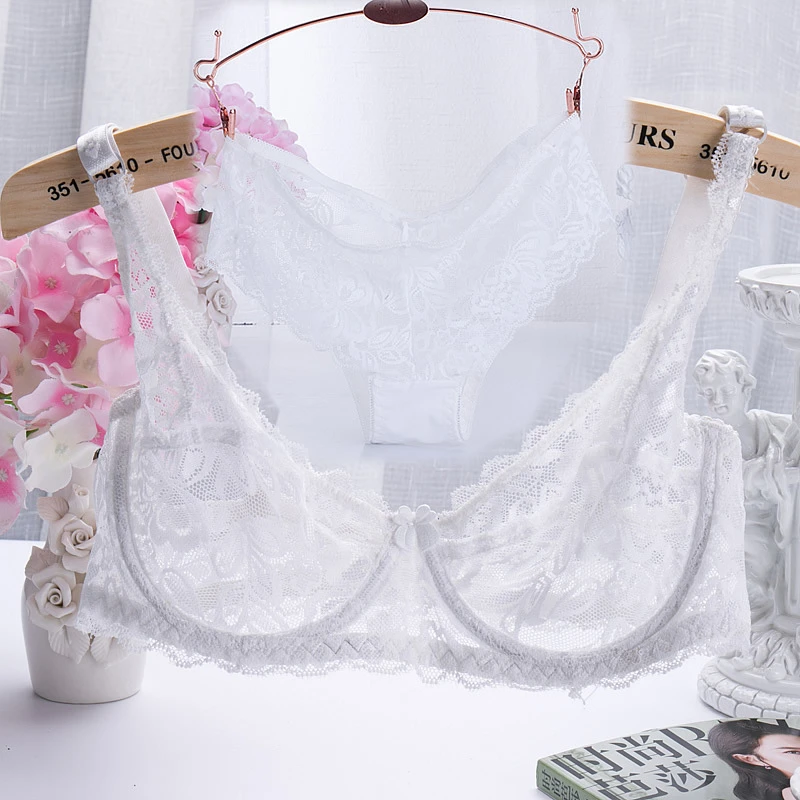 36B38B`40BProduct details of Bra Set Women Lingerie Set Underwire Ultra Thin Transparent Full Lace Female Comfortable Underwear Sleeping Bra Set Large Size Thin
