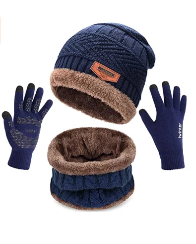 Product details of BURU Luxury 3 Pc Full Beanie Set Winter Beanie Cap Neck Warmer & Gloves Set