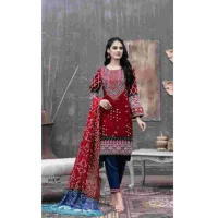DC-203 – 3PC Lawn Neckline Embroidered Shirt with Printed Chiffon Dupatta (D)