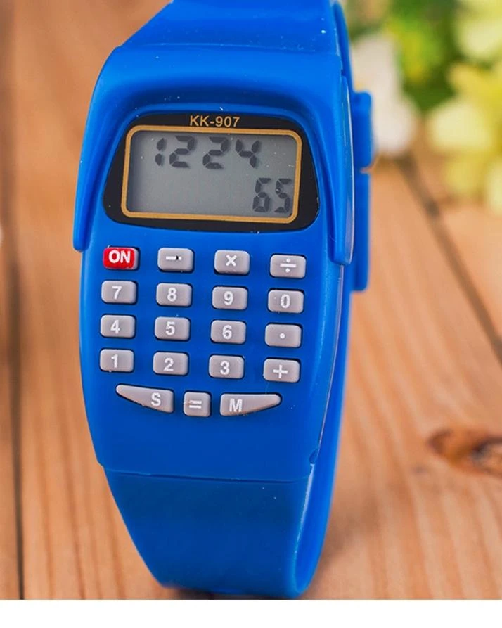 Digital Calculator With Led Watch Function Casual Silicone Sports Blue