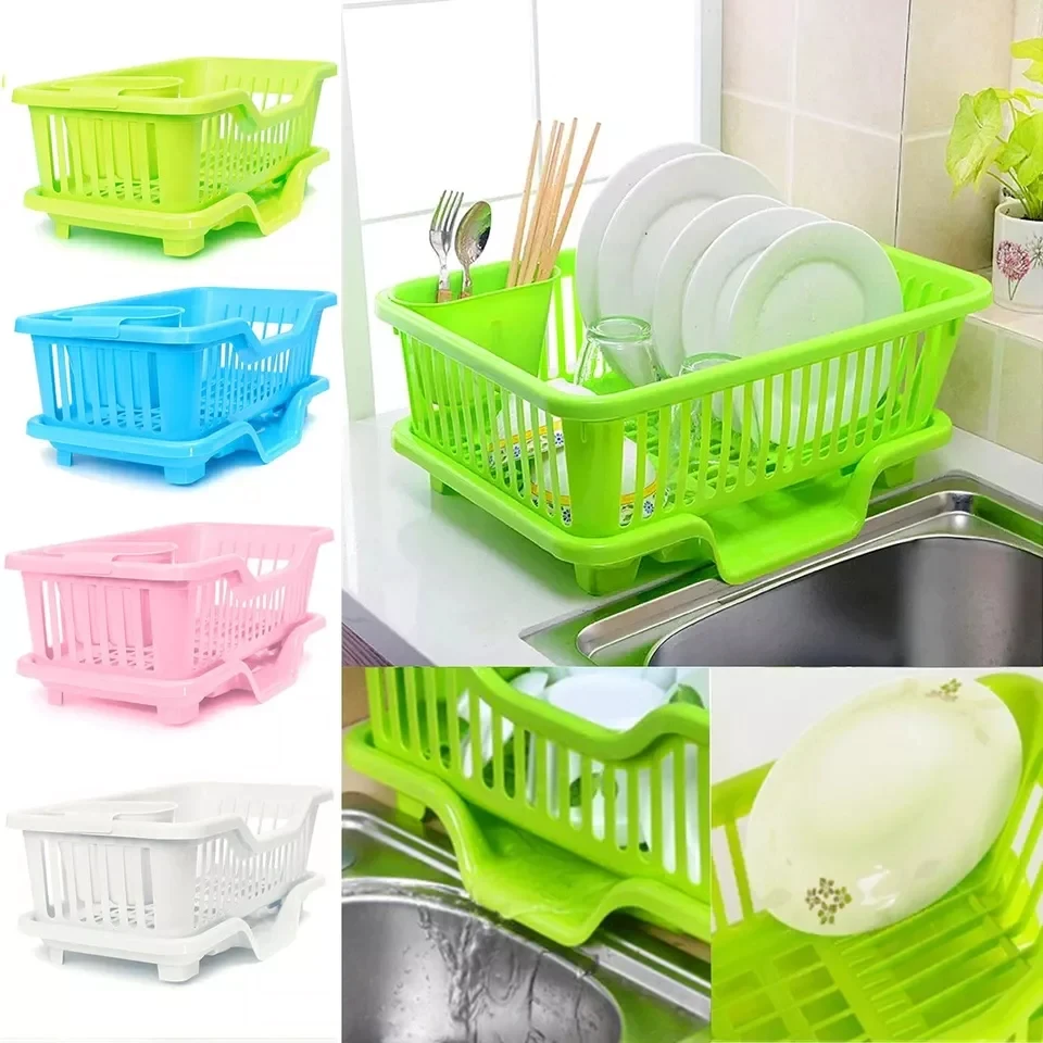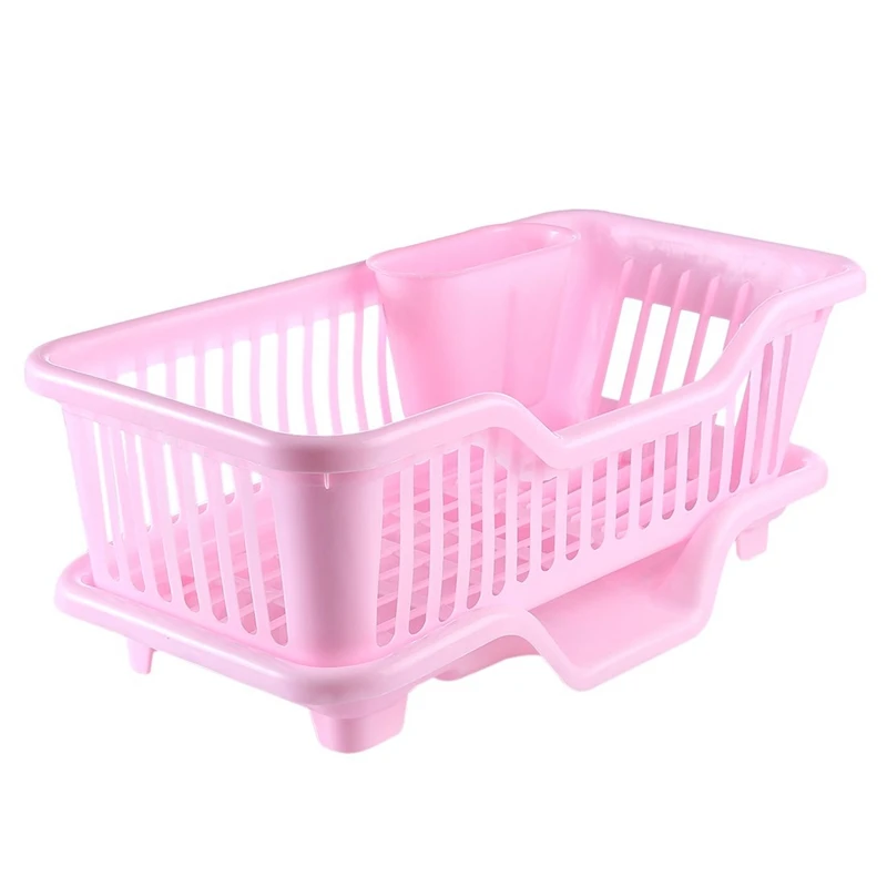 Product details of Environtal Plastic Kitchen Sink Dish Drainer Set Rack Washing Holder Basket Organizer Tray, Approx. 17.5 x 9.5 x 7INCH (Pink)