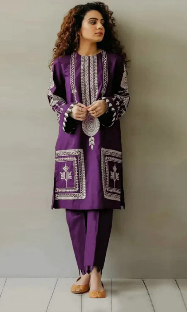 2PC Heavy Embroidered Shirt Linen Trouser Free Home Delivery 7 Days Return & Exchange Policy