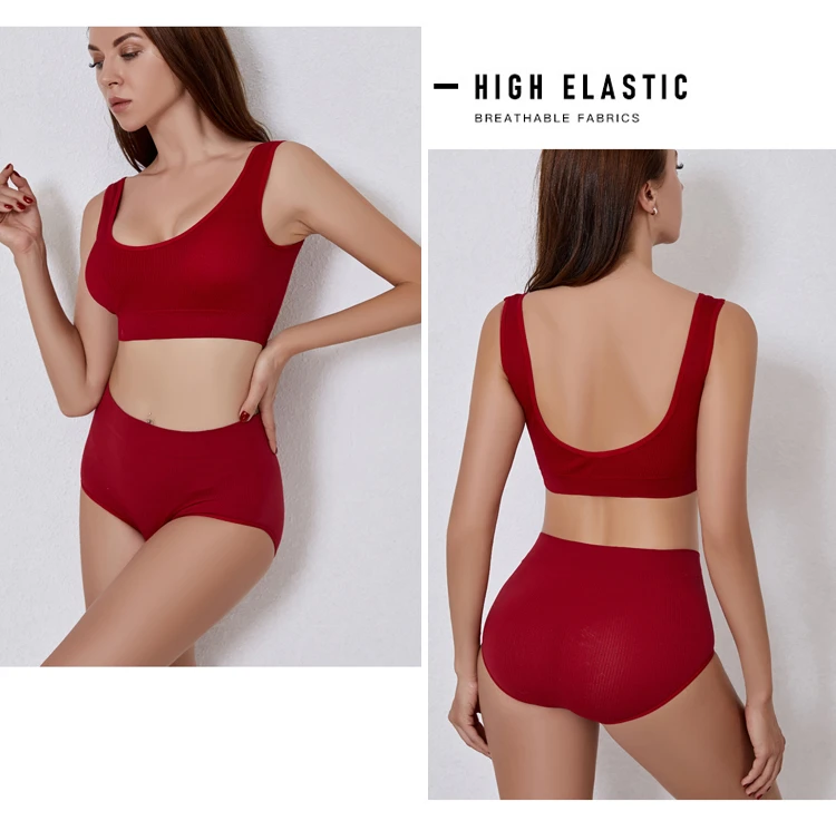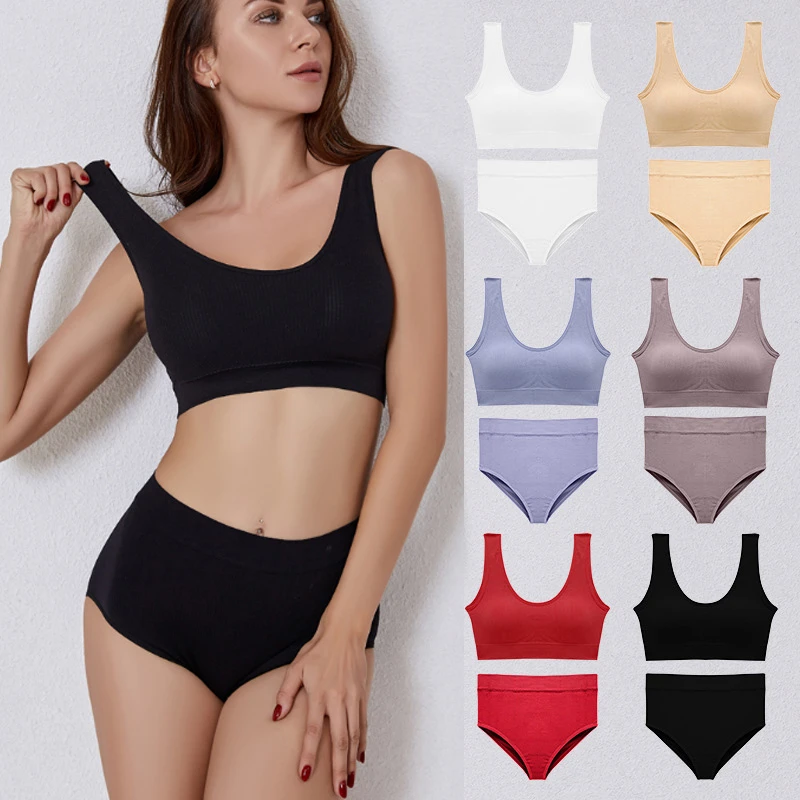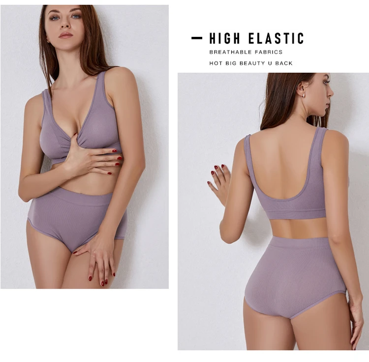 Product details of Fashion Simple Women’s Underwear Set Sports Breathable Panties Bra Set Lingerie Comfort Wire Free Bralette Striped Top Bras