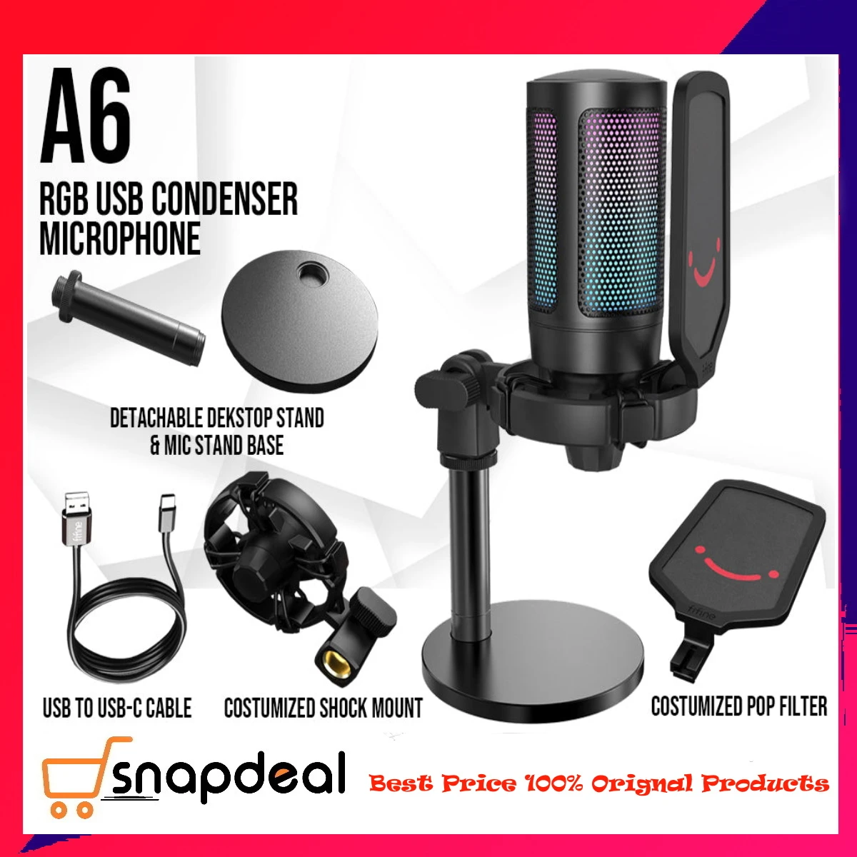 Product details of Fifine Latest RGB Microphone Model A6 AmpliGame Gaming Online Show Recording USB Microphone