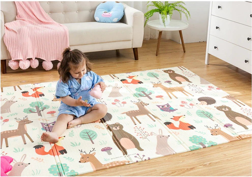 Β·γHealth & Safety FirstγWeardear kids play matis made up of high density XPE baby play mat foam, which reduces the pain tothe baby cause by falling. The cute patterns on playmats are printed withvegetable oil ink, feature BPA free, non-toxic, no-fading, no chemical odor,comfortable and safe for infant tummy time and baby crawling timing