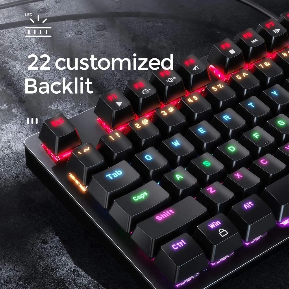 High Level Mechanical Gaming KeyboardFull RGB 22 Modes Of LightingMechanical Swithes Floating Switch 45g Trigger Pressure8 Million Keystroke LifetimeBlack mechanical swithes