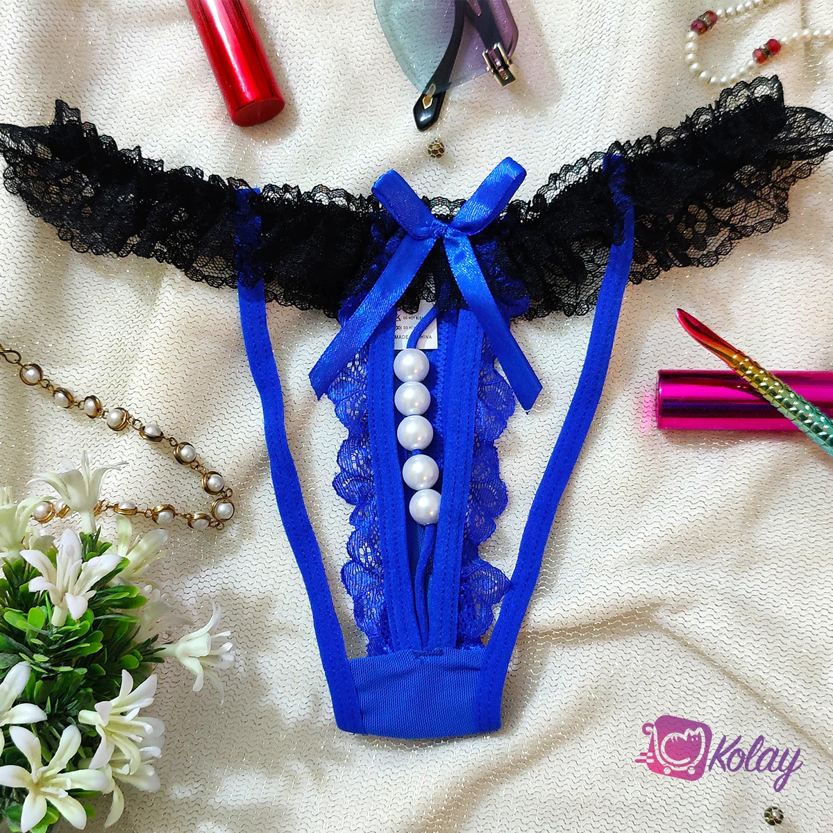 Product details of Girls Sexy Lingerie Panties Bowknot Beads Lace Underwear Waist Pearls Underpants Female Thongs Briefs Temptation Woman