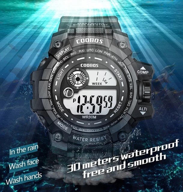 High Quality Sports Kids Boys Watches Waterproof Led Cool Luminous Digital Watch Men’s Alarm Stop Watch Week Display Clocks New