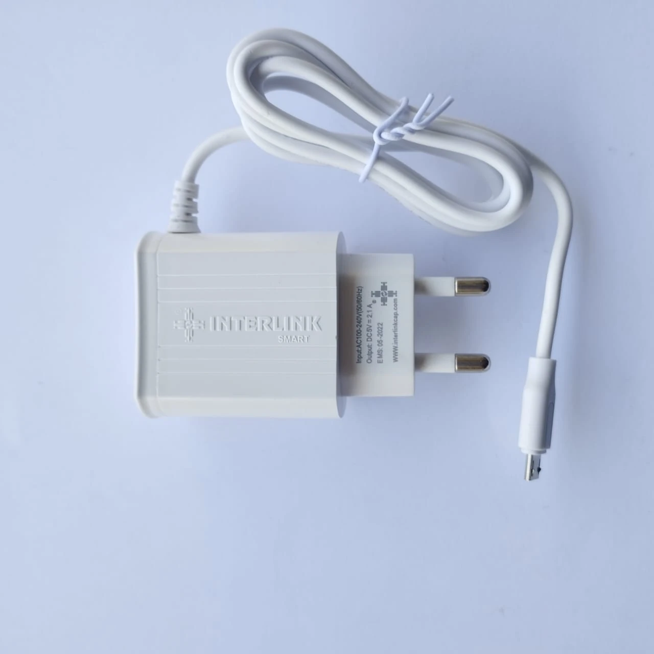 Product details of Interlink smart Usb Mobile charger | 2 USB Outputs | 2.1 A charger | 3 in 1 rapid charging with fixed cable.
