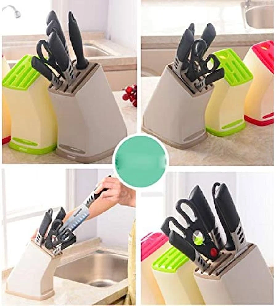 6 Slots design to hold cleave knives, chef knives, kitchen scissors, sharpener rod, and more.