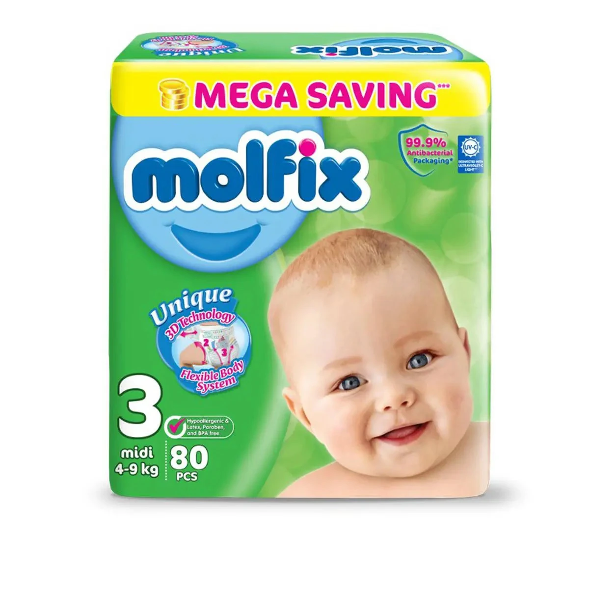 Product details of Molfix 3D Mega Midi Pack (Size-3, 80Pcs)