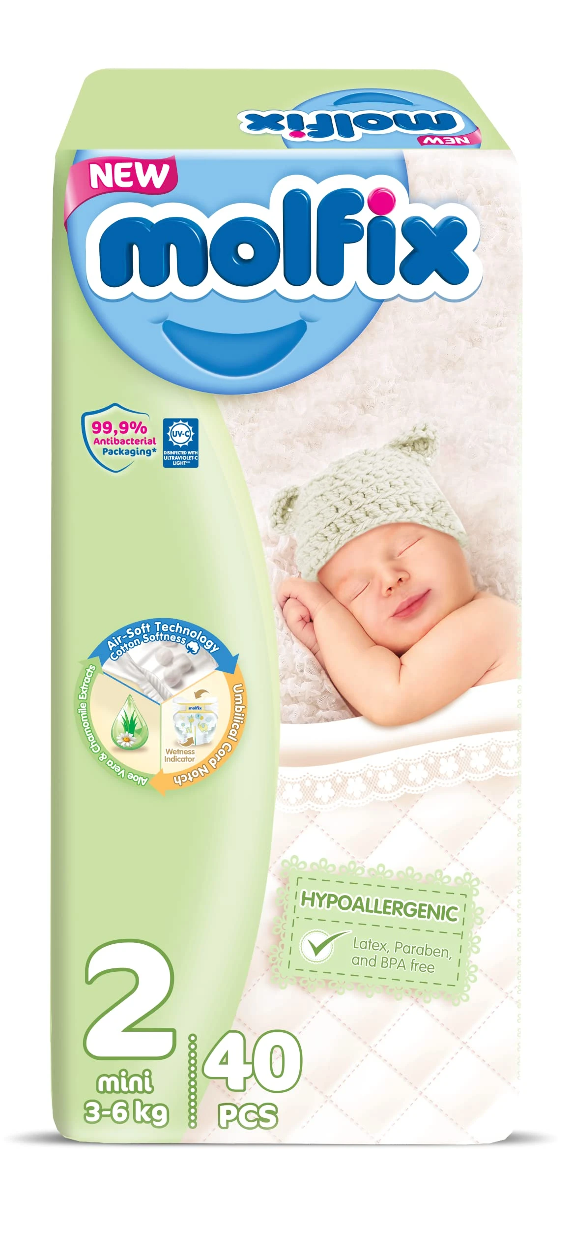 Product details of Molfix Diaper,Size 2, Mini, 3-6Kg, 40Pcs,Twin Pack
