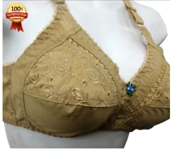 Product details of Non Padded Bra for Women with Chicana Embroidery Classic Cotton Bras for Women’s with Adjustable wide straps in 34 to 50 Size Brazer for B and C Cups Summer Non Wired Brassiere for Ladies in Beige Color