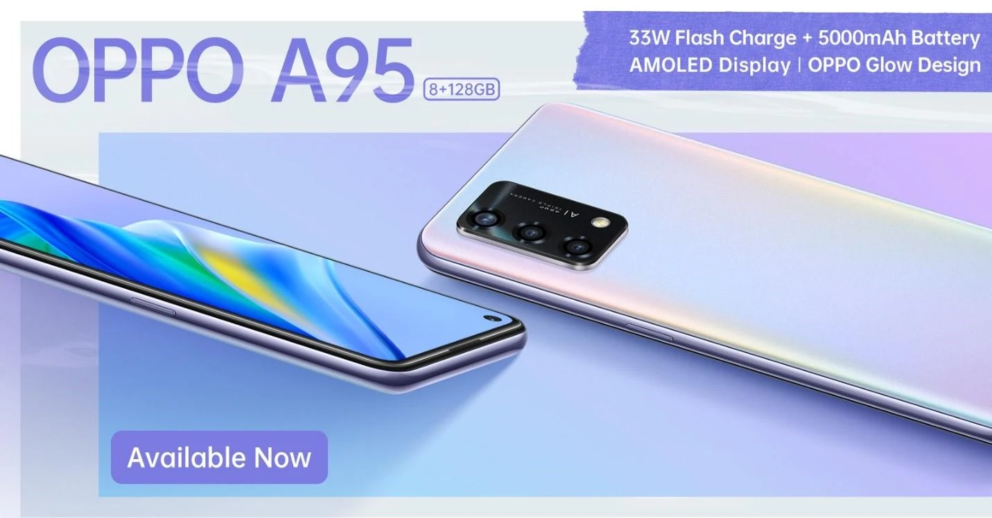 Specifications of OPPO A95 33W Flash Charge 5000 mAh Battery And RAM 8GB ROM 128GB With OPPO Glow Design