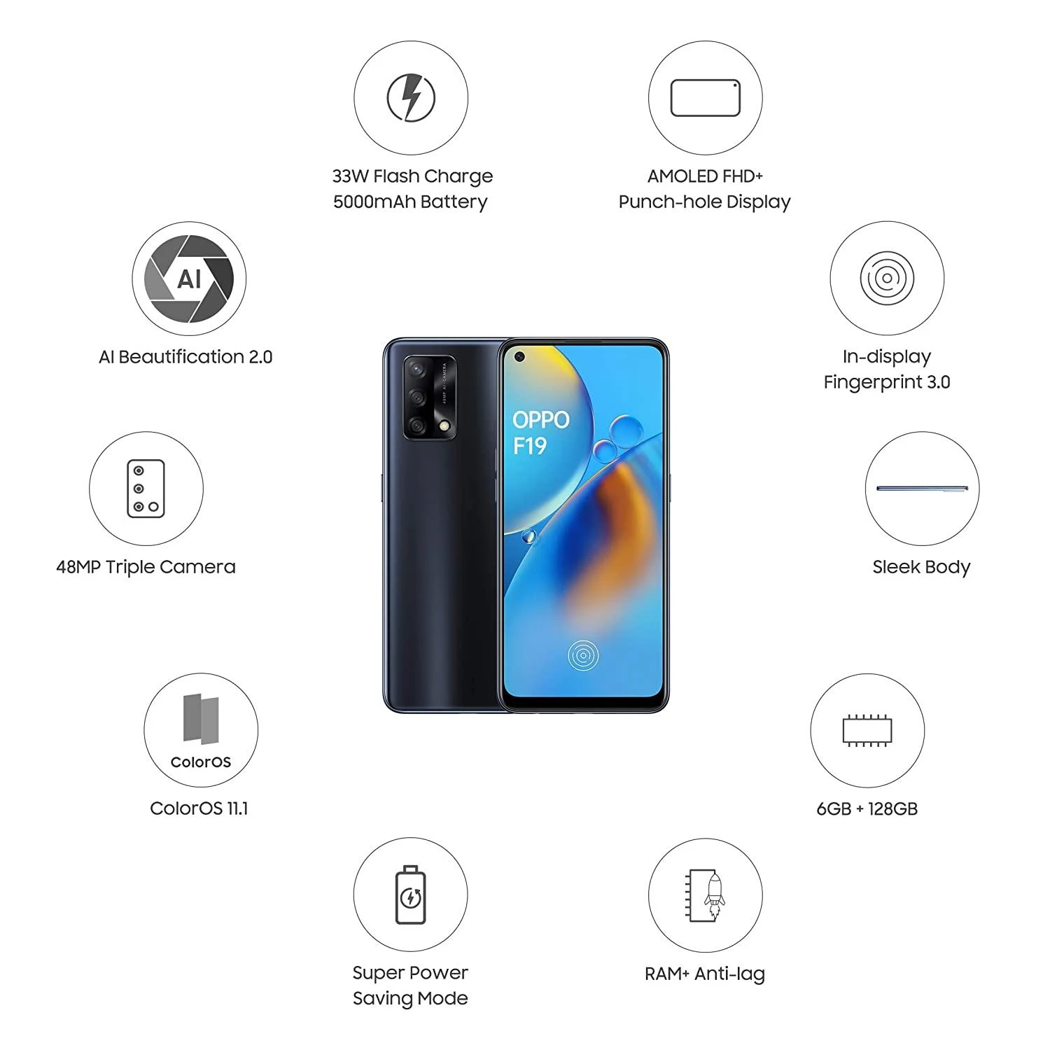 Product details of OPPO F19 Ultra Slim Ultra Powerful Ram 6GB And Rom 128GB With 33W Flash Charging