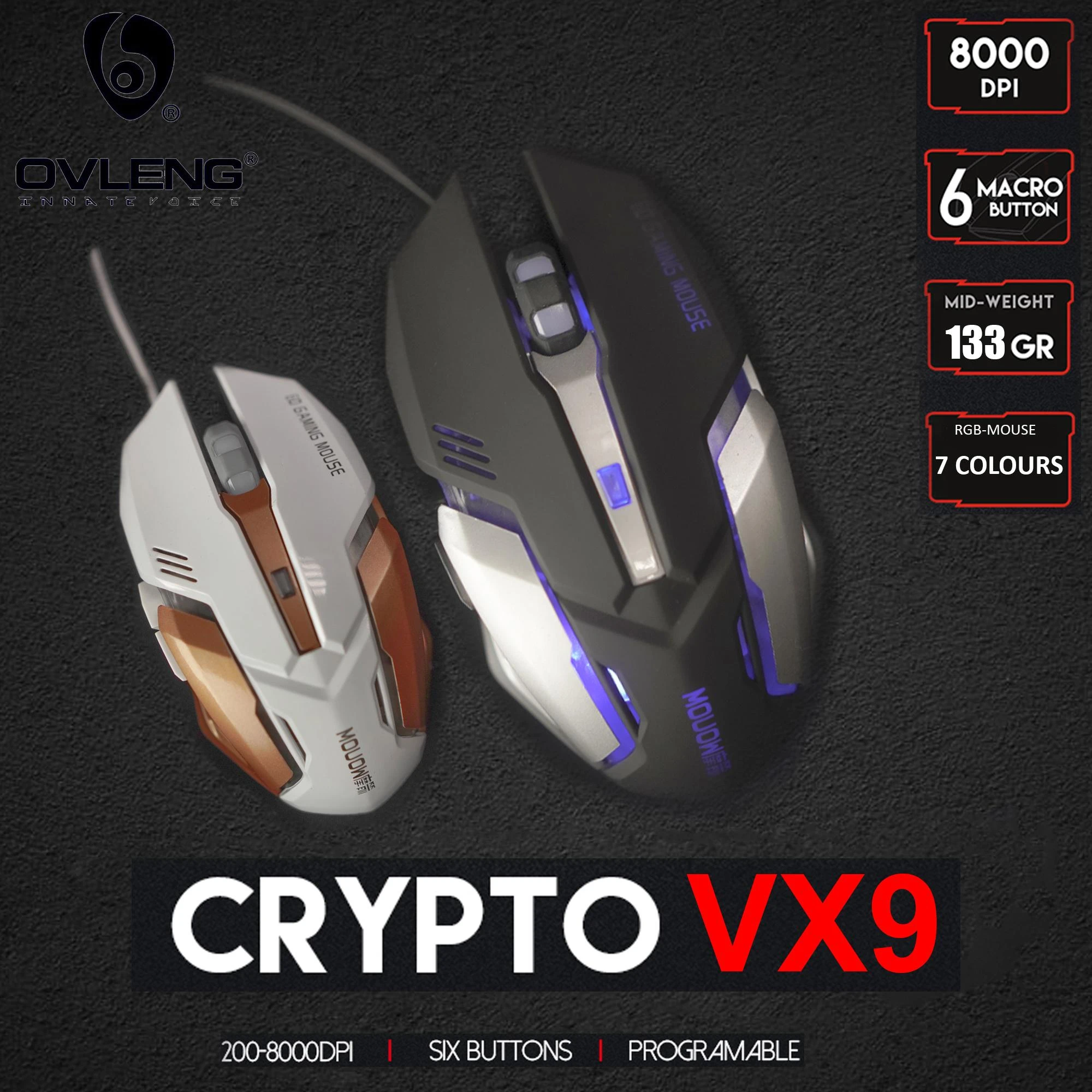 Product details of Ovleng Crypto VX9 8000 DPI RGB Gaming Mouse with 6 Programmable Buttons for Pro Gamers