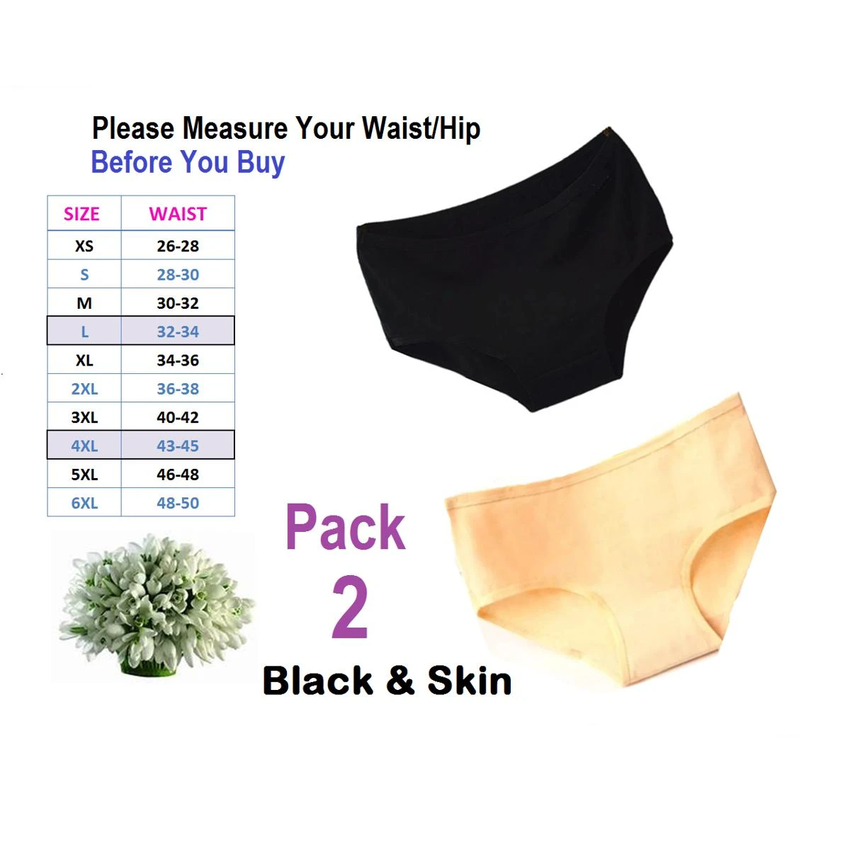 Product details of Pack of 2 Underwear Panties for Girls Women Soft Cotton Silk Panties for Girls Black-Skin Color