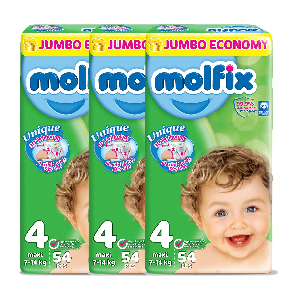 Pack of 3,Molfix Diaper, Size 4, Maxi, 7-14Kg, 54Pcs, Jumbo Packs