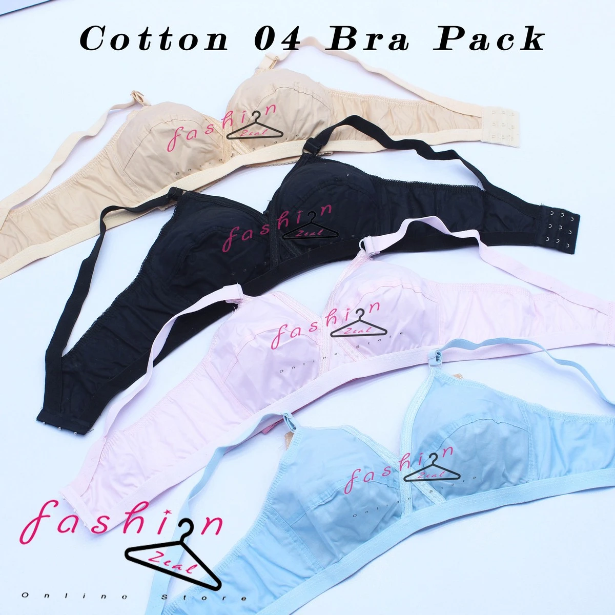 Product details of Pack of 4 Women’s Ladies Girls Skin Black Light Pink Sky Blue Pure Cotton Simple Bra Blouse Brazier Undergarments Lingerie MO-002