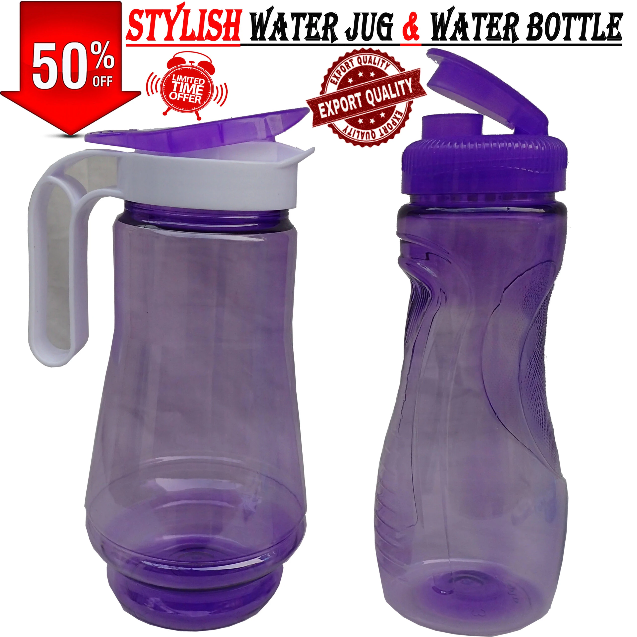 Product details of Pair of Drinking Water Jug & Bottle Transparent Plastic 1L – 2L
